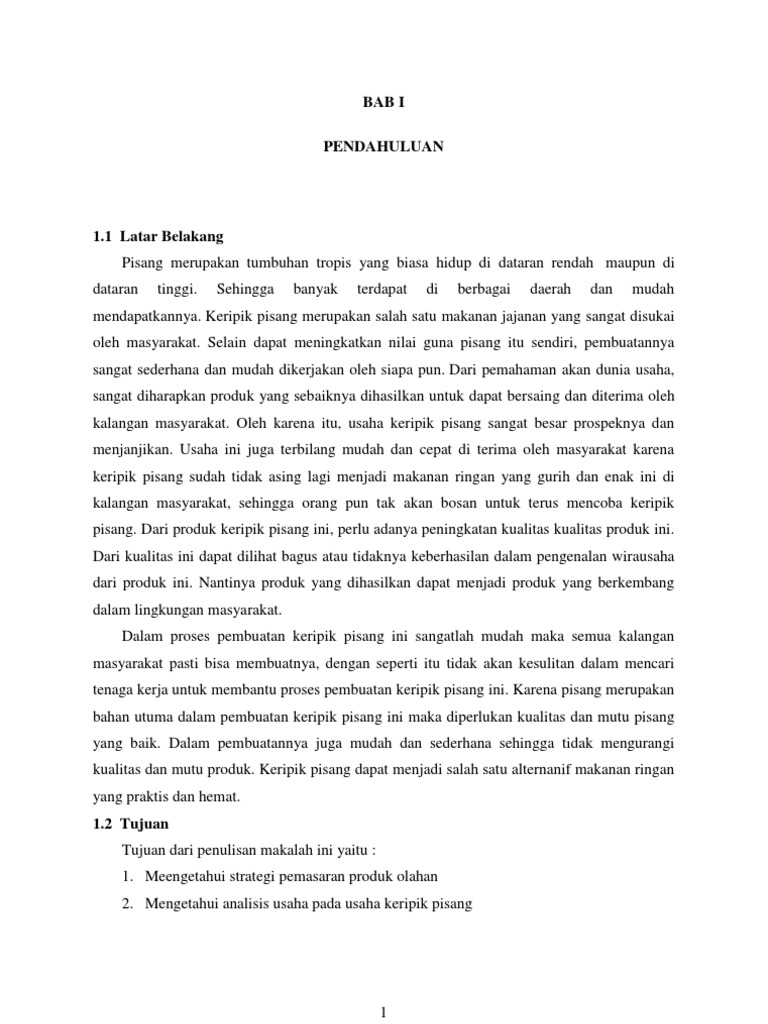 Selain dapat memenuhi kebutuhan masyarakat juga membuka peluang usah a bagi masyarakat untuk berwirausaha. Makalah usaha kecil keripik pisang. Contoh proposal usaha keripik pisangthe papa chips sendiri adalah singkatan dari panganan palu, dalam olahan keripik pisang. Bermitra dengan bumn atau perusahaan swasta yang sudah memiliki manajemen, usaha berjalan minimal 2 tahun dan sertakan proposal. Pisang adalah nama umum yang diberikan pada tumbuhan terna raksasa berdaun besar memanjang dari suku musaceae.